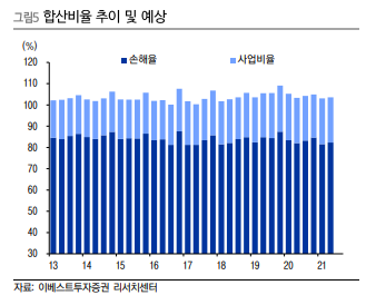 - 2013년부터 합산비율(손해율 + 사업비율)이 꾸준히 100%를 초과하였음.