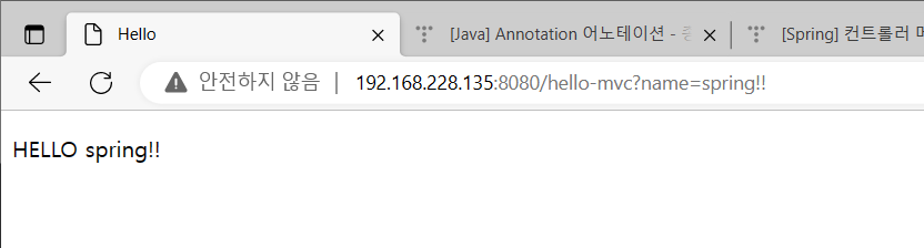 - http://192.168.228.135:8080/hello-mvc?name=spring!!