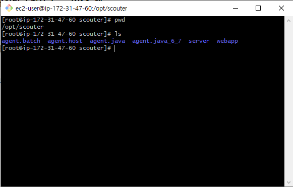 /opt/scouter로 이동하여 agent.host, server폴더 등 확인