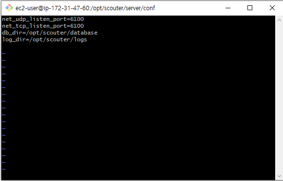 /opt/scouter/server/conf 로 이동하여 scouter.conf 파일 확인