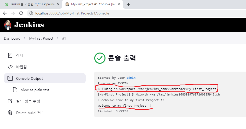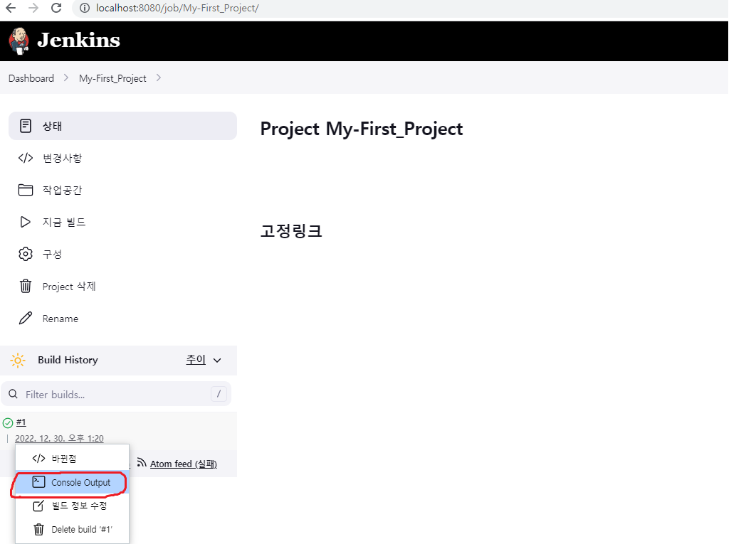 - jenkins output컨솔에서 docker linux에 item생성 위치 확인