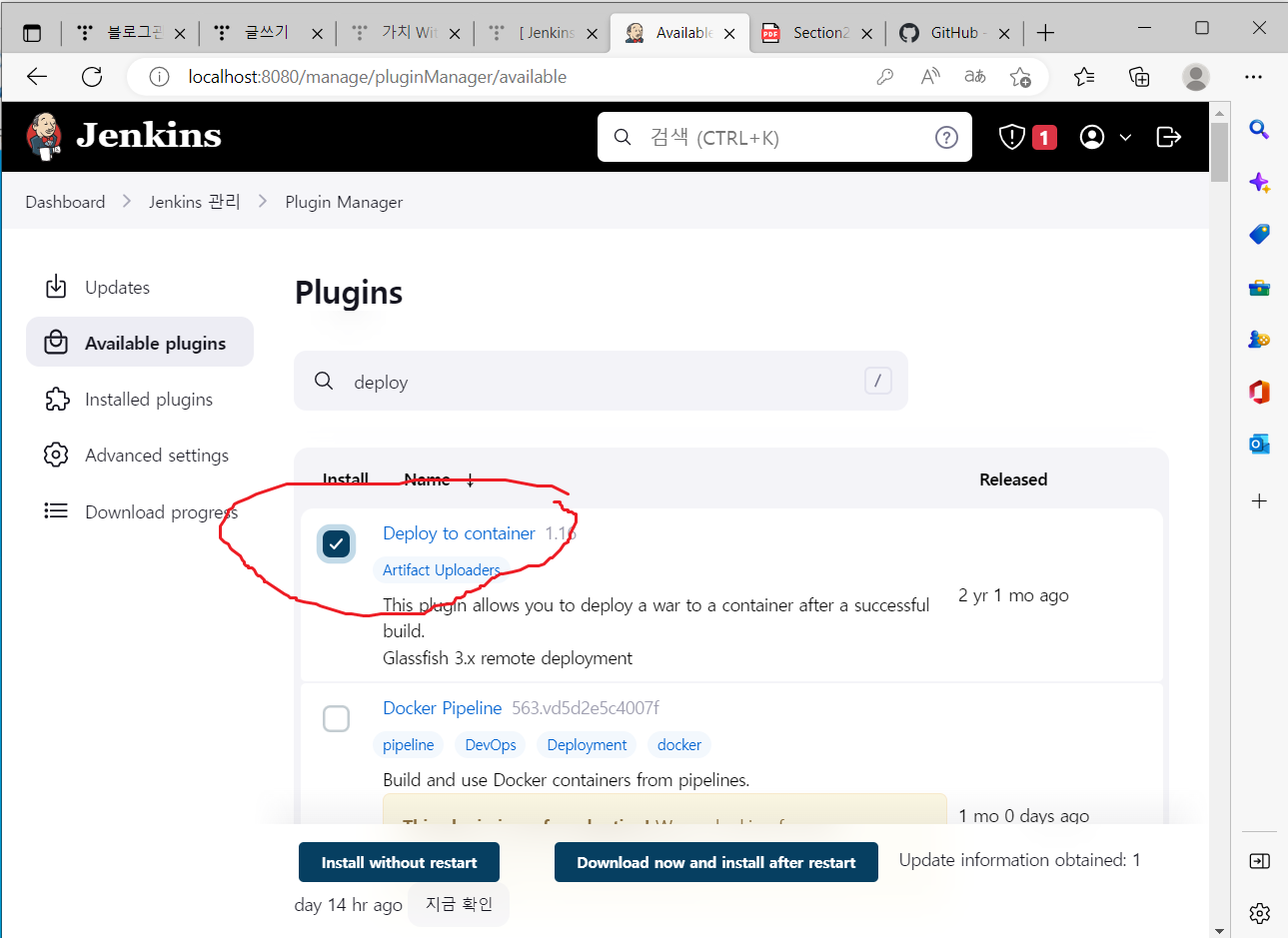 1, 젠킨스에 Deploy to container 플러그인 설치