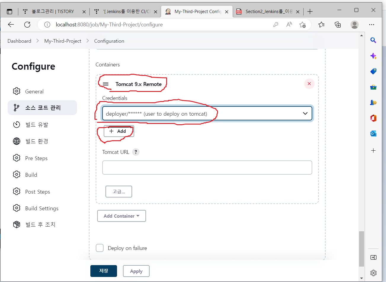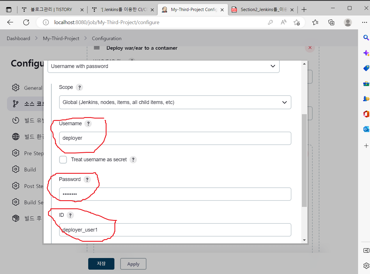 - Tomcat설정에서 user로 생성시킨 deployer정보를 입력함.