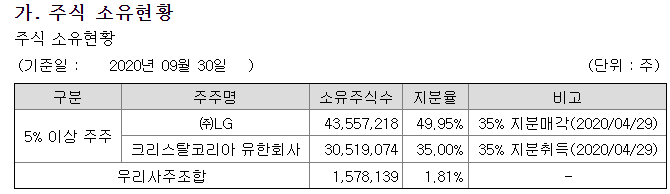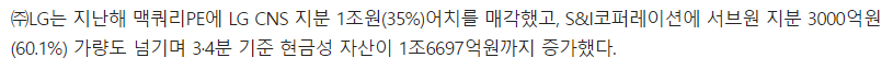 - 주 LG가 LG CNS지분에 49.5%를 보유하고 있다.