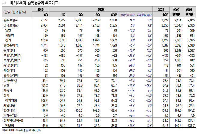메리츠 화재 : 실적호조세 지속 - 전배승 (2021/02/22)