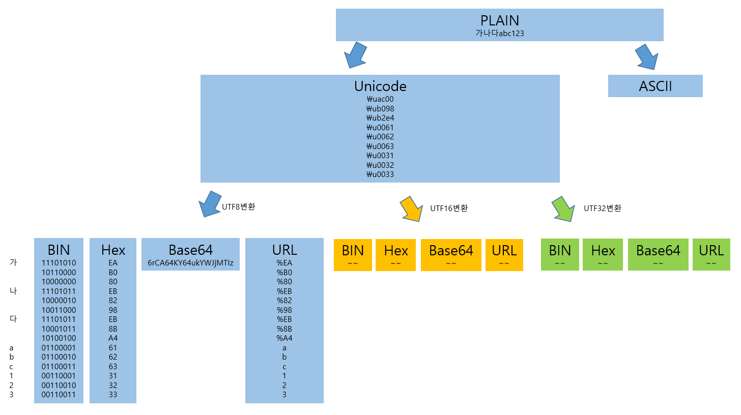 * Unicode는 개념상으로만 존재하기 때문인지, Plain을 unicode로의 변경은 아래 사이트를 통해 가능하나, Unicode를 UTF-8로 변경하는 Case는 찾을 수 없었음.