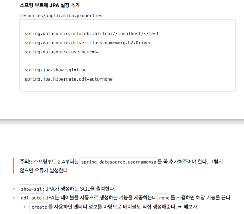 - JpaMemberRepository 클래스는 EntityManager 객체를 DI받아야 한다. EntityManager 객체는 수동으로 Bean등록하는것이 아니라 스피링에서 자동 생성한다.