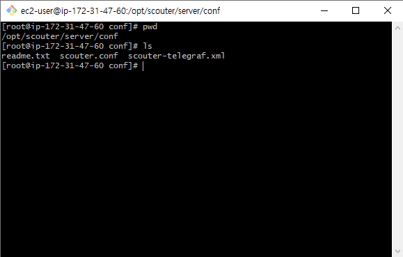 /opt/scouter/server/conf 로 이동하여 scouter.conf 파일 확인