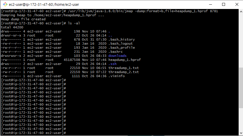- jmap을 이용하여 heap dump생성