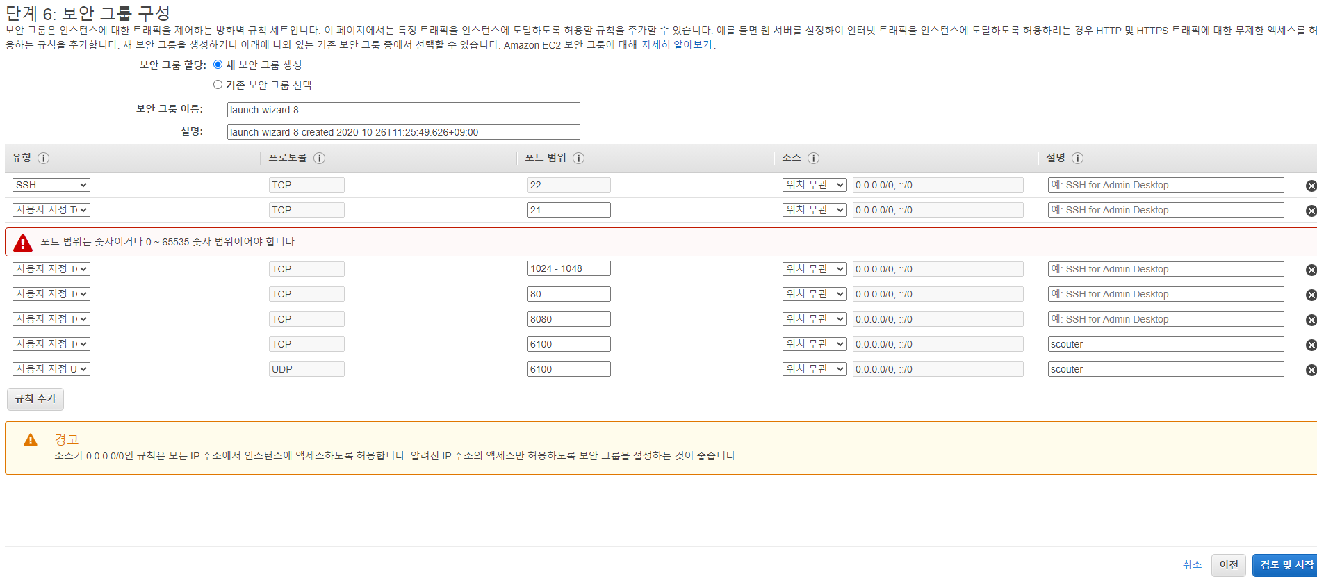 1.9 보안그룹을 아래와 같이 설정
