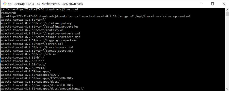 sudo tar xvf apache-tomcat-8.5.59.tar.gz -C /opt/tomcat --strip-components=1