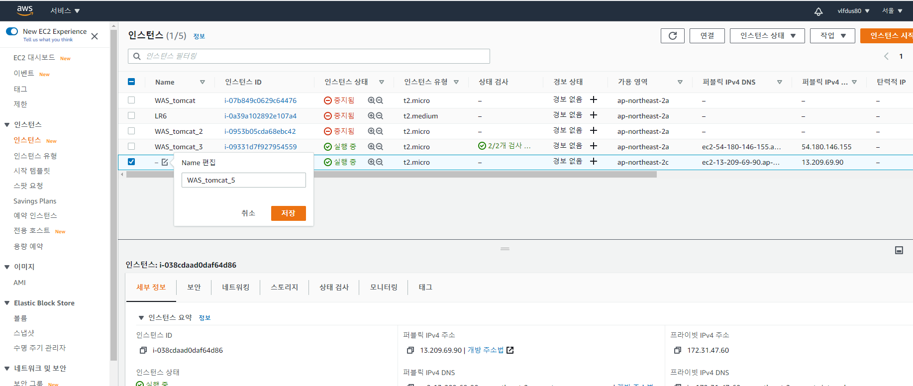 1.10 인스턴스가 생성되면 이름을 편집한다.