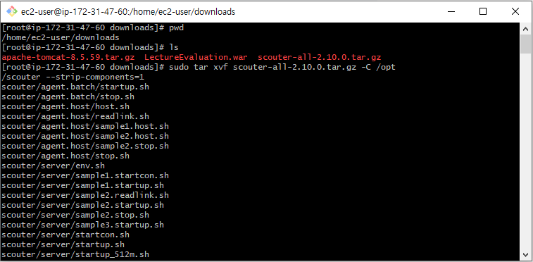 sudo tar xvf scouter-all-2.10.0.tar.gz -C /opt/scouter --strip-components=1