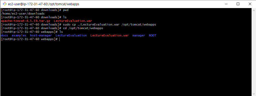 sudo cp ./LectureEvaluation.war /opt/tomcat/webapps