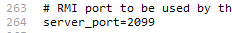 server_port 부분에 port 입력 & server.rmi.localport 부분에 port입력