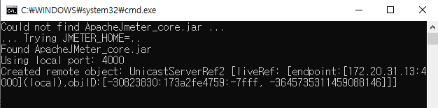 4.2 slave PC에서 jmeter-server.bat 을 실행시킨다.