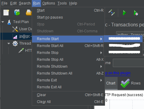 5. Master PC에서 jmeter.bat실행하여 Run->Remote Start 에서 설정한 ip들 확인